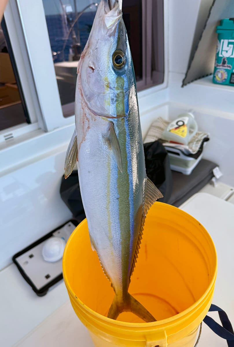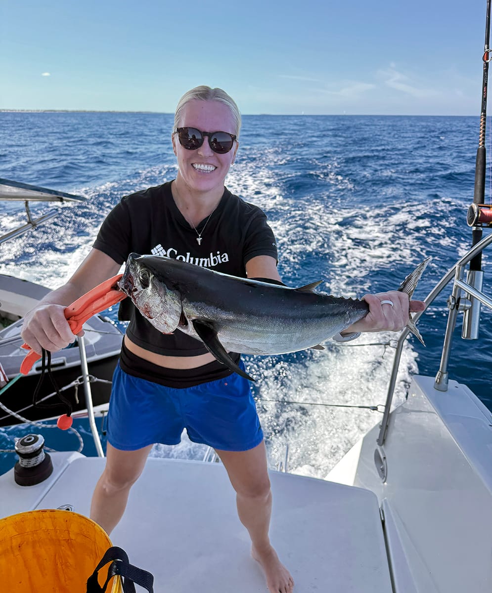 We passed through multiple schools of tuna busting bait on the surface with all the classic signs of tuna birds and even some sharks. They probably would have taken any lure but we reeled in tuna and a rainbow runner on the cedar plug and pink skirt setups we had chosen for the day.