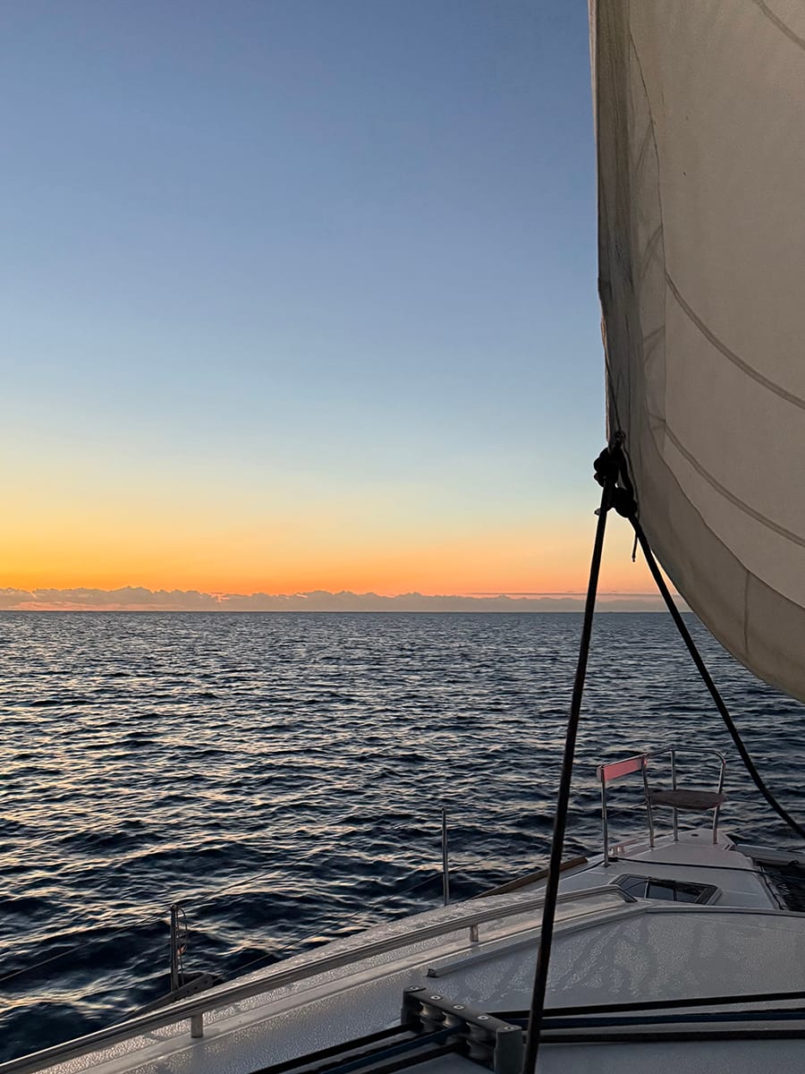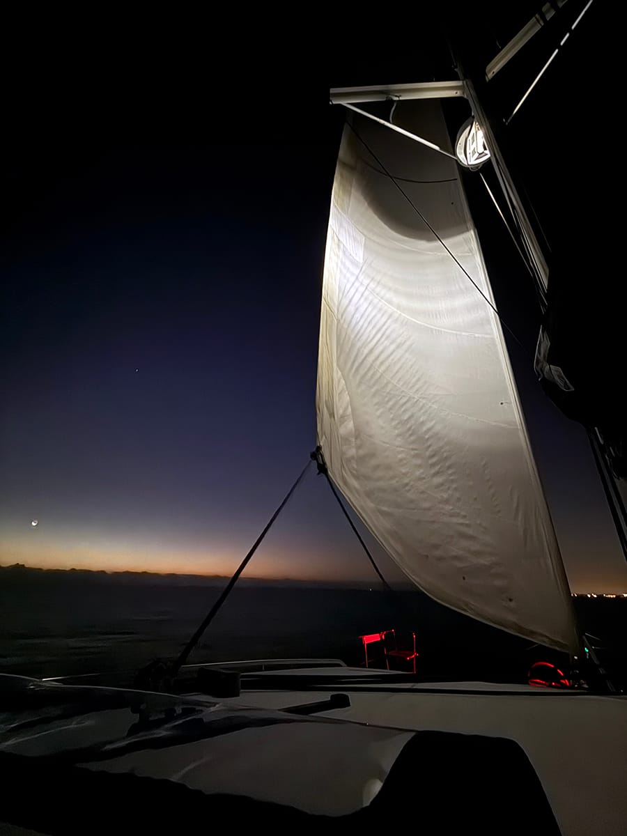 The next day started early. The anchor was up by 4:30 a.m. and we headed out the inlet and toward Miami. It was a perfect Florida winter day and since most people were off work and out of school, the ocean was absolutely packed with boats. We motor/sailed to Hurricane Harbor and dropped anchor in Biscayne Bay just before dark. As expected, Miami was loud and crowded. Luckily, we didn’t plan on staying long and just needed a good night’s sleep.