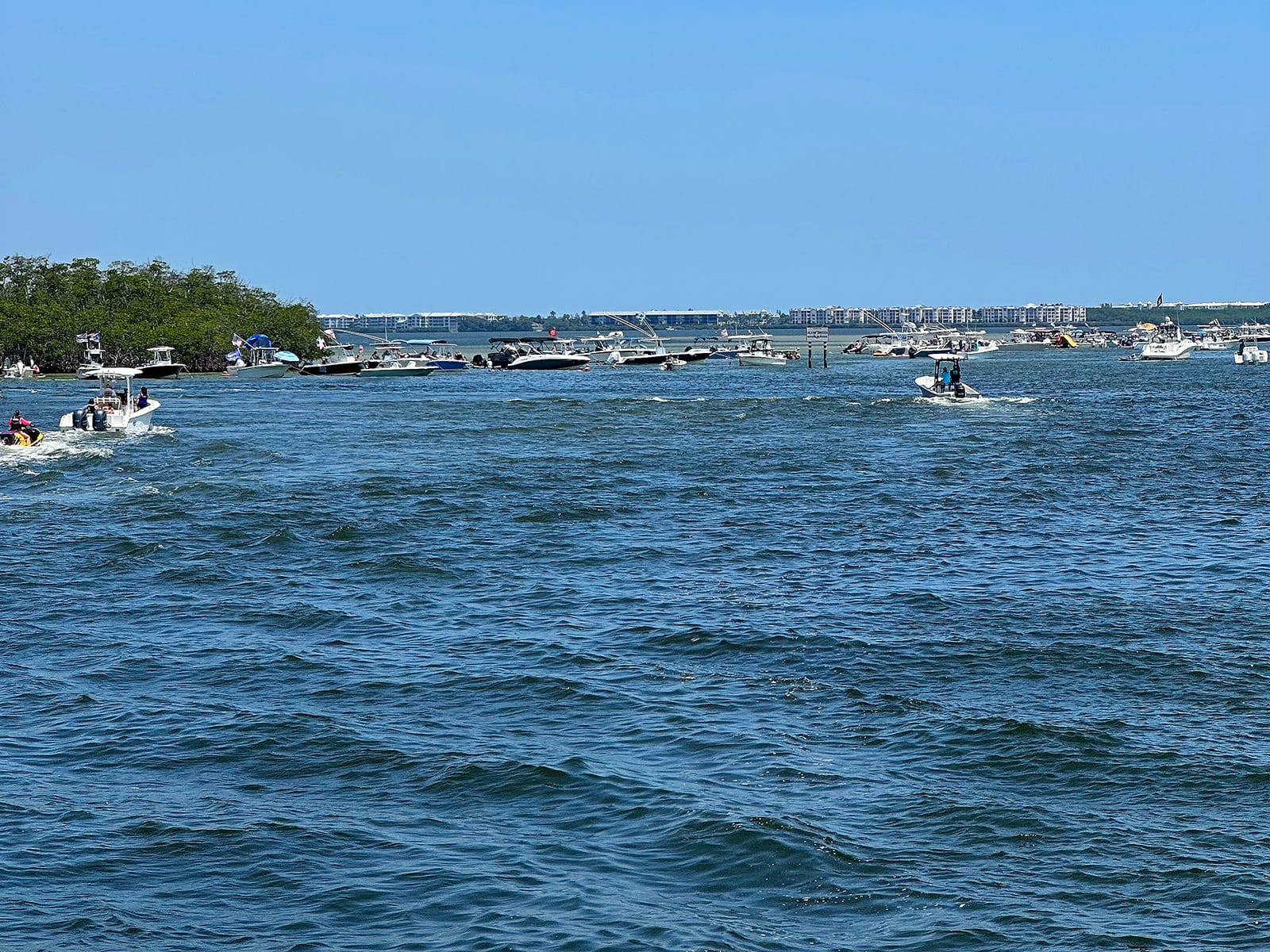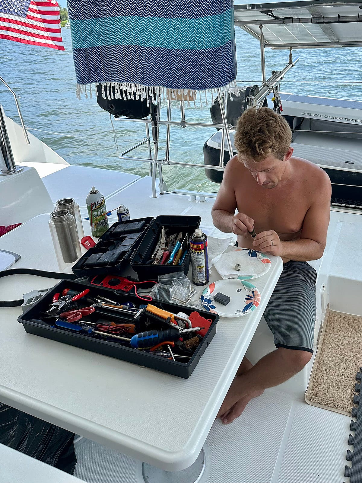 We found some beautiful clear water to anchor and spend 4th of July weekend. We’ve been busy taking care of some boat chores and people watching the crowds heading to the nearby sandbars. Those who live in Florida can understand how crazy the sandbars on a holiday weekend can be. It was wildly entertaining.