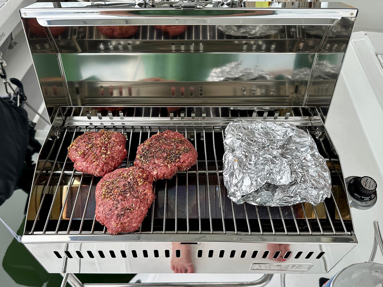 - We sourced a lighter and finally got to have “first night at anchor” burgers on the grill… on night four.