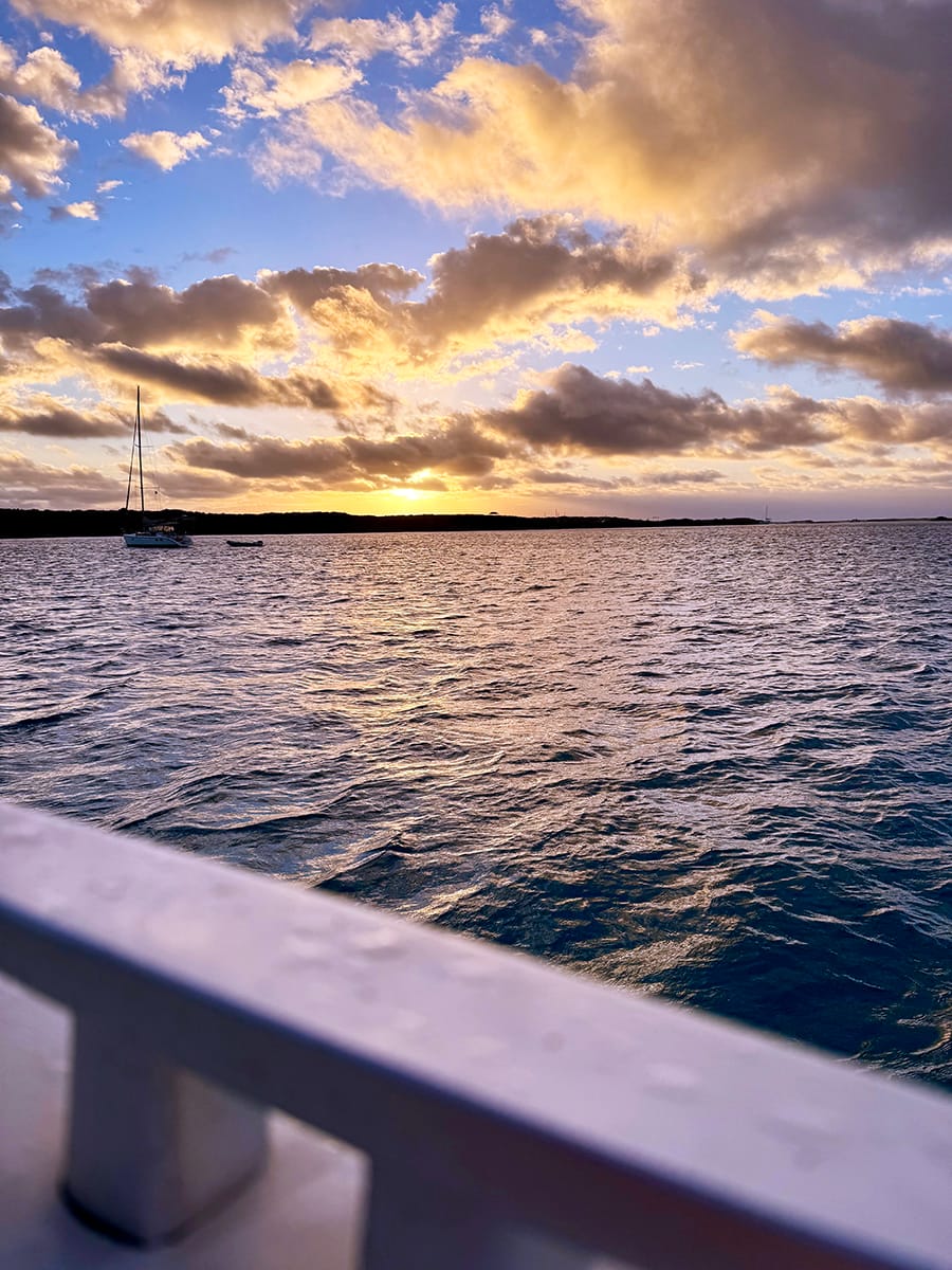 The trip took much longer than expected but we arrived at Highbourne Cay right before dark.
