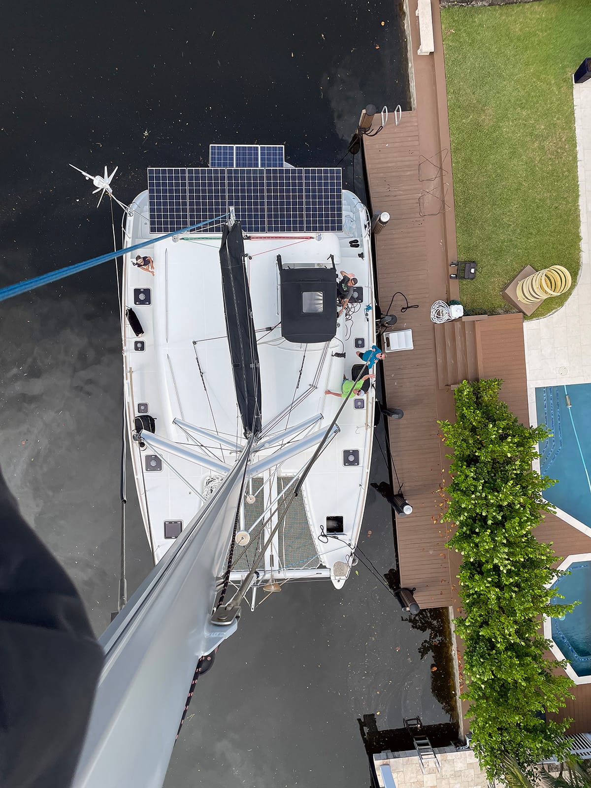 The final act was a trip up the mast for our surveyor to inspect those harder-to-reach areas. It was thrilling to watch and definitely gets your heart racing to see someone so high up in the air.